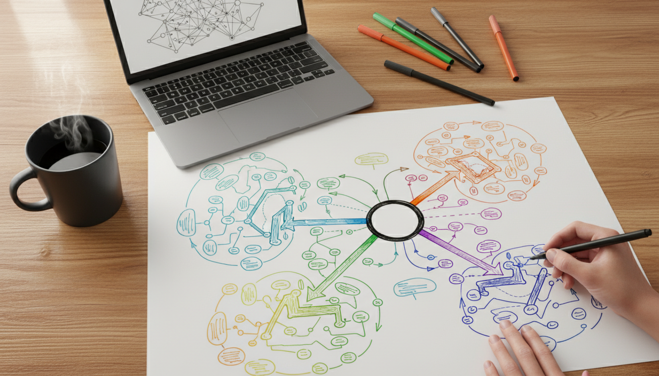 Zacznij od najważniejszego pytania: po co to robisz? Chcesz awansować na stanowisko menedżera? Zmienić branżę? A może po prostu stać się lepszym specjalistą w swojej dziedzinie? Twój cel będzie centralnym punktem mapy. Zapisz go na środku kartki i zakreśl kółkiem. Może to być „Ja jako Senior Developer” albo „Kompetencje Lidera Zespołu”.
